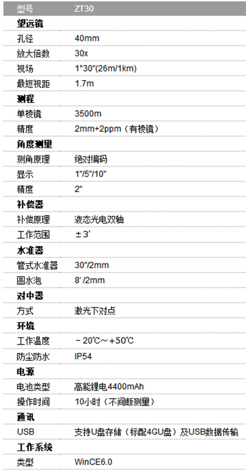 關(guān)鍵詞:測(cè)量?jī)x器:中緯ZT30 全站儀,測(cè)量?jī)x器|測(cè)繪儀器|全站儀|RTK|三維激光掃描儀|經(jīng)緯儀|水準(zhǔn)儀